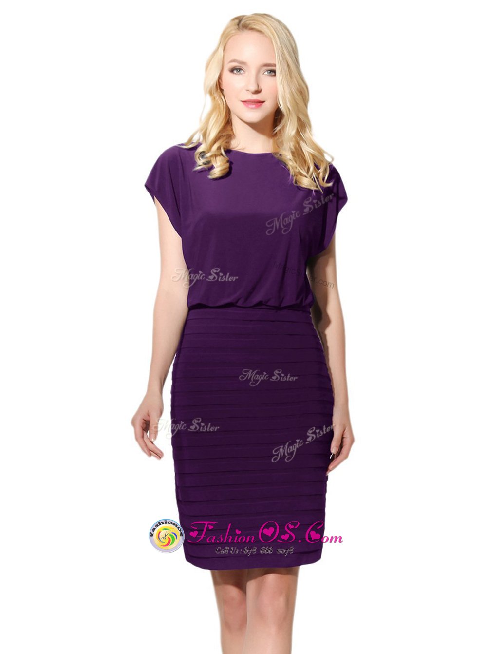 Unique Silk Like Satin Bateau Cap Sleeves Zipper Ruffles Dress for Prom in Navy Blue