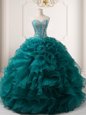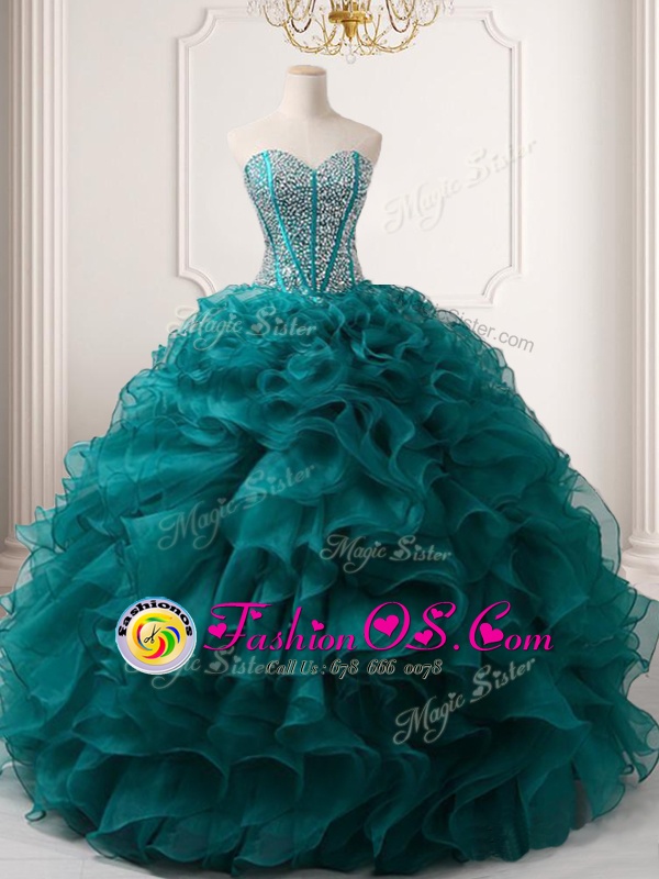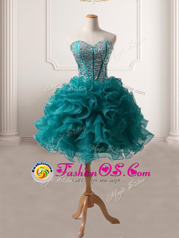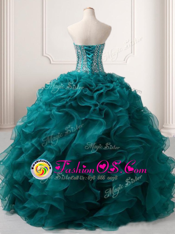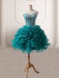 Unique Sleeveless Lace Up Floor Length Beading and Ruffles Evening Dress