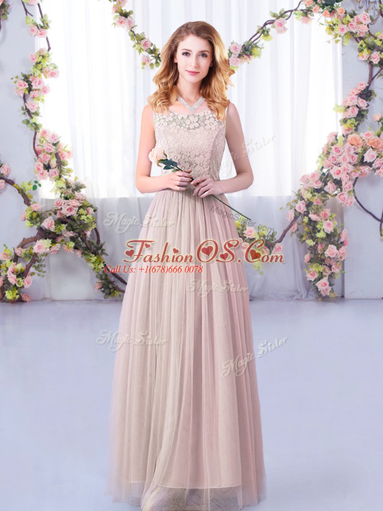 Unique Sleeveless Side Zipper Floor Length Lace and Belt Quinceanera Court of Honor Dress