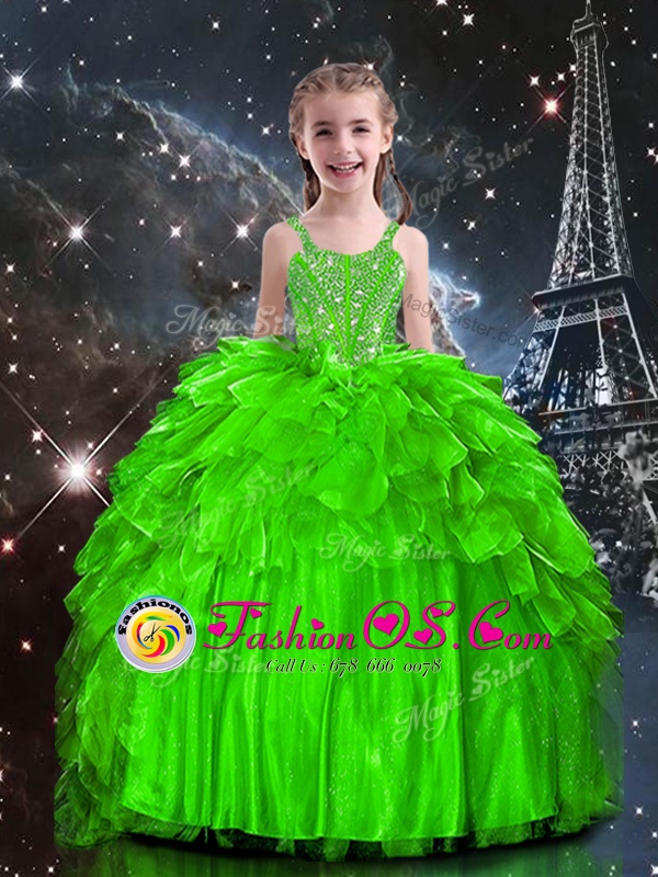 Unique Spaghetti Straps Sleeveless Little Girls Pageant Gowns Floor Length Beading and Ruffles Organza