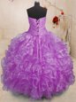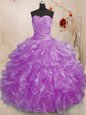 Unique Sweetheart Sleeveless Organza Quinceanera Gown Beading and Ruffles Lace Up