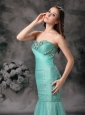 Unique Turquoise Mermaid Evening Dress Sweetheart Organza Beading Floor-length