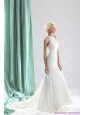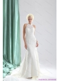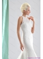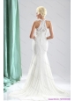 Unique White High Neck Lace Bridal Dresses with  Brush Train
