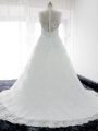 Unique White Sleeveless Brush Train Beading and Lace Wedding Gown
