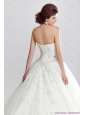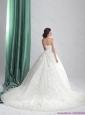 Unique White Sweetheart Lace Bridal Gowns with Appliques and Brush Train