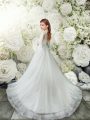 Home >  Special Occasion Dresses >  Cheap Flower Girl Dresses > Unique White Toddler Flower Girl Dress Wedding Party with Lace Scoop 3 4 Length Sleeve Brush Train Clasp Handle