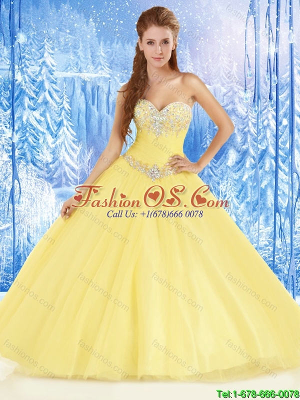 Home >  Quinceanera Dresses >  Unique Quinceanera Dresses > Unique Yellow Sweetheart Quinceanera Dresses with Beading