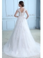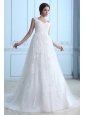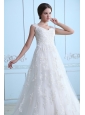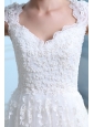 This beautiful wedding dress is the perfect outfit for you when you want to look sexy, classy and elegant all at the same time! It's made from a great lacy material. The fitted bodice has two straps and a V-neckline. The entire dress has a lace over lay that adds a sense of princess dream.The floor-length skirt falls in soft clean lines to the floor then extending into a beautifully sweeping train in the back.