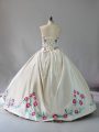 Home >  Quinceanera Dresses >  Cute Quinceanera Dresses > Vintage Champagne Satin and Tulle Lace Up Quinceanera Dresses Sleeveless Floor Length Embroidery