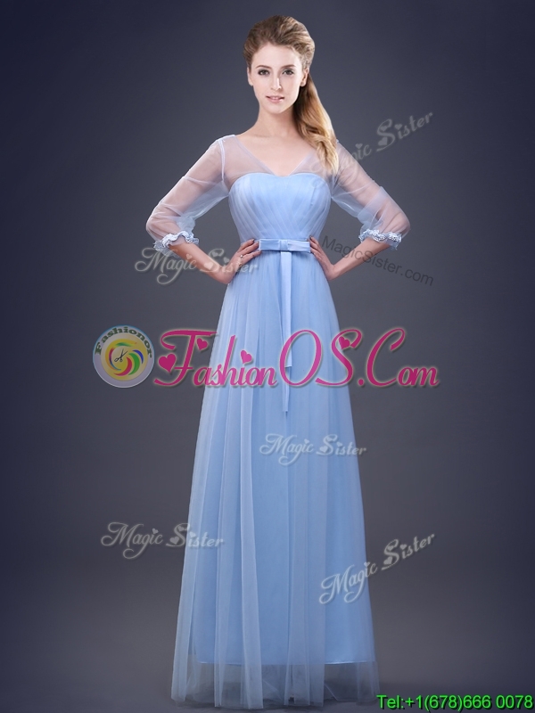 Home >  Special Occasion Dresses >  New Style Dama Dresses > Vintage Empire Half Sleeves Light Blue Dama Dress in Tulle
