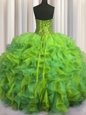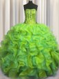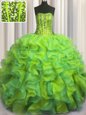 Vintage Fabric With Rolling Flowers Sleeveless Quinceanera Gown Brush Train and Beading and Pick Ups
