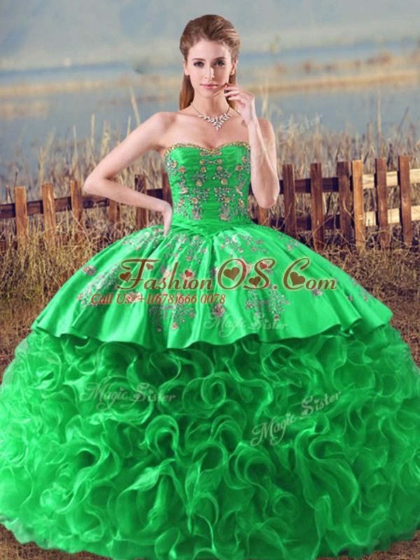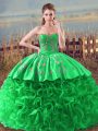 Vintage Green Sleeveless Fabric With Rolling Flowers Lace Up Sweet 16 Dresses for Sweet 16 and Quinceanera