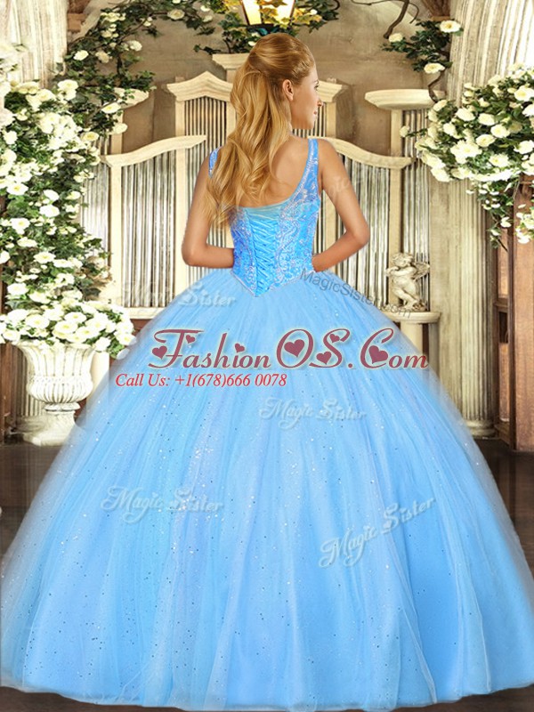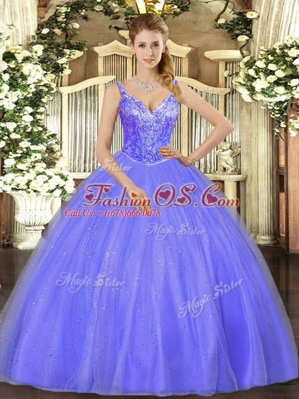 Vintage Lavender Lace Up Quinceanera Dress Beading Sleeveless Floor Length