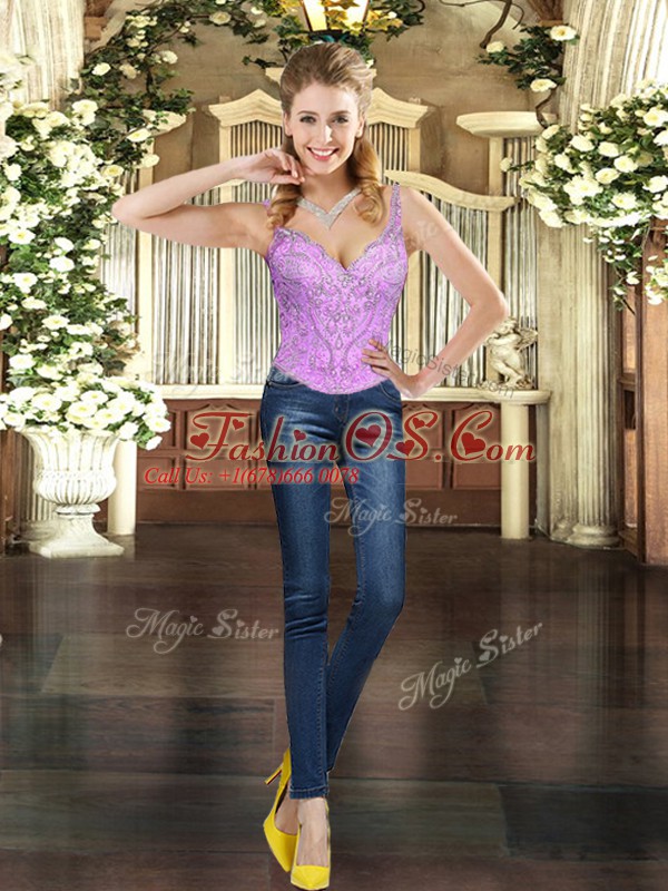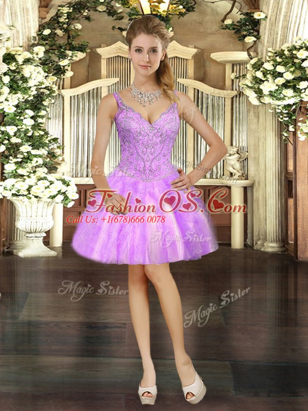 Vintage Lilac Sleeveless Floor Length Beading and Ruffles Lace Up 15th Birthday Dress