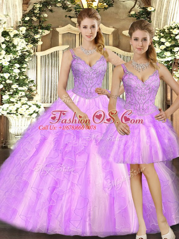 Home >  Quinceanera Dresses >  Detachable Quinceanera Skirts > Vintage Lilac Sleeveless Floor Length Beading and Ruffles Lace Up 15th Birthday Dress