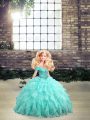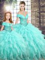 Vintage Off The Shoulder Sleeveless Brush Train Lace Up 15 Quinceanera Dress Aqua Blue Organza