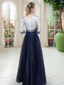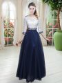 Vintage Organza 3 4 Length Sleeve Floor Length Prom Dress and Beading and Lace