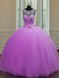 Vintage Purple Ball Gowns Halter Top Sleeveless Tulle Floor Length Lace Up Beading Quinceanera Dresses