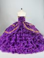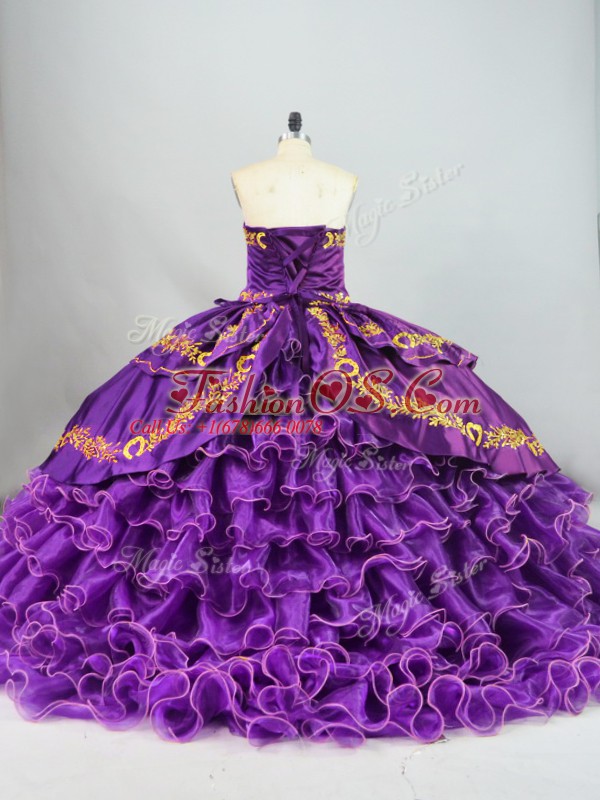 Vintage Purple Sweetheart Lace Up Embroidery and Ruffled Layers Quinceanera Dress Brush Train Sleeveless