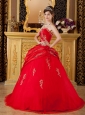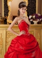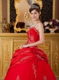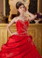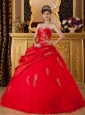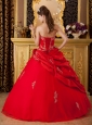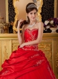 Vintage Red Sweet 16 Dress Sweetheart Taffeta Appliques Ball Gown