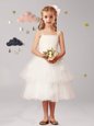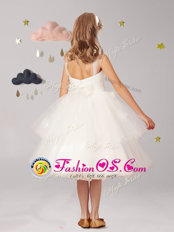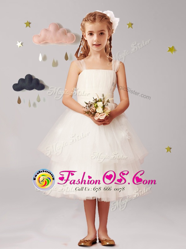 Vintage Ruffled Straps Sleeveless Zipper Flower Girl Dresses White Tulle