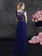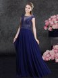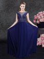 Vintage Scoop Cap Sleeves Side Zipper Floor Length Beading and Appliques Mother Of The Bride Dress
