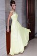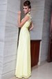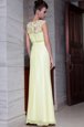 Home >  Prom Dresses >  Perfect Prom Dresses > Vintage Scoop Light Yellow Cap Sleeves Beading and Hand Made Flower Floor Length Prom Dresses