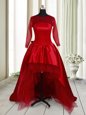 Home >  Prom Dresses >  Junior Prom Dresses > Vintage Scoop Long Sleeves High Low Clasp Handle Wine Red and In for Prom with Bowknot