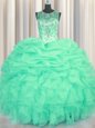 Vintage Scoop See Through Sleeveless Beading and Ruffles and Pick Ups Lace Up Quinceanera Gown