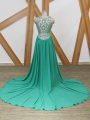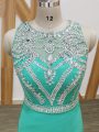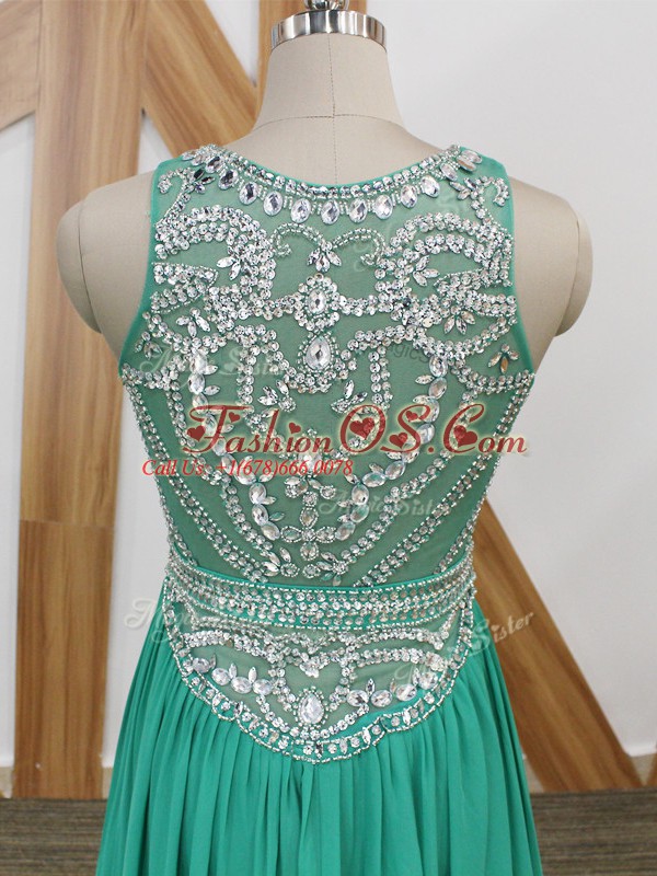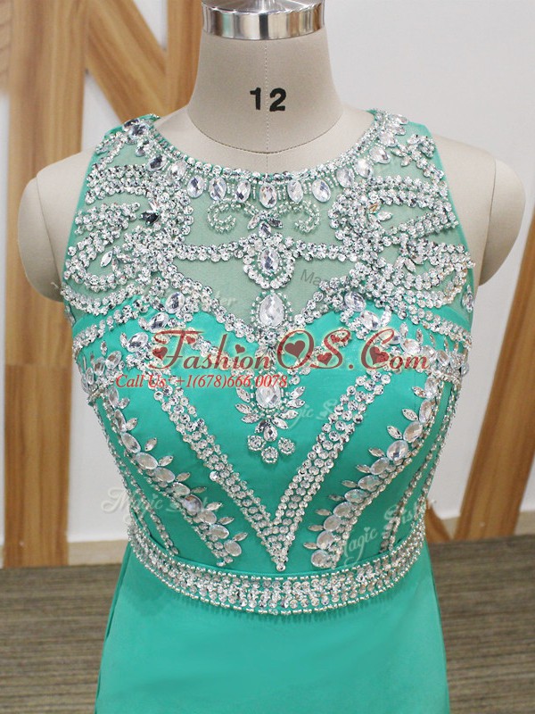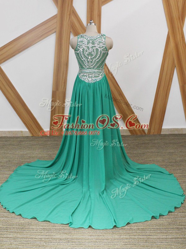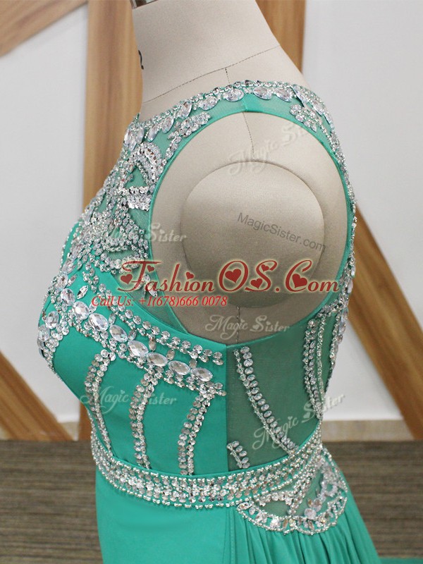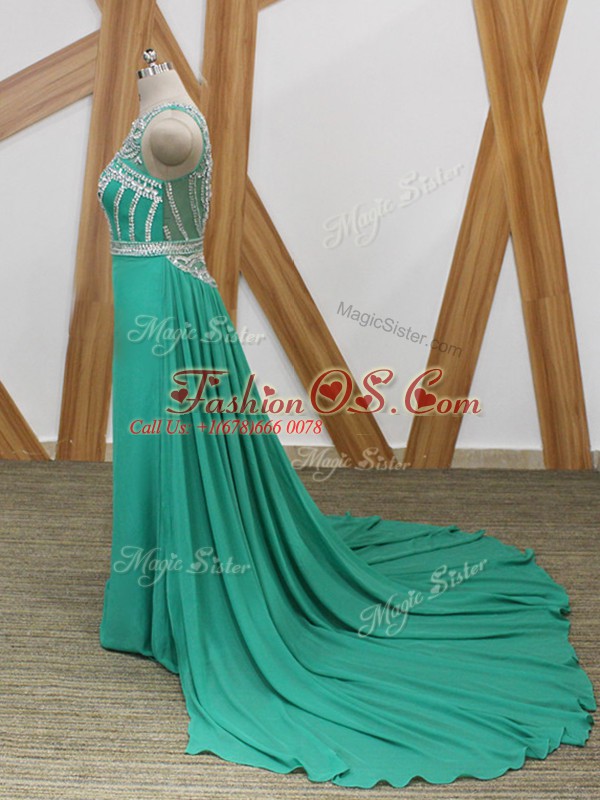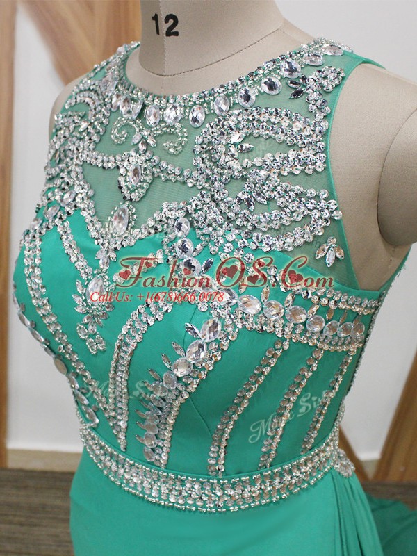 Vintage Sleeveless Chiffon Watteau Train Side Zipper Celebrity Dresses in Turquoise with Beading