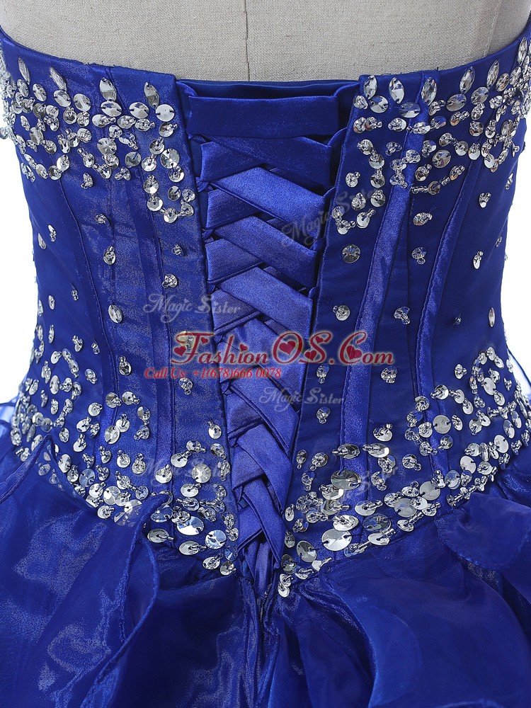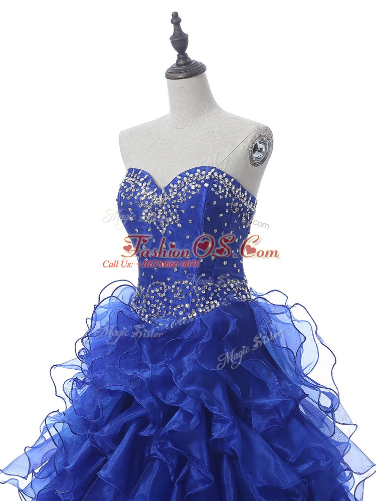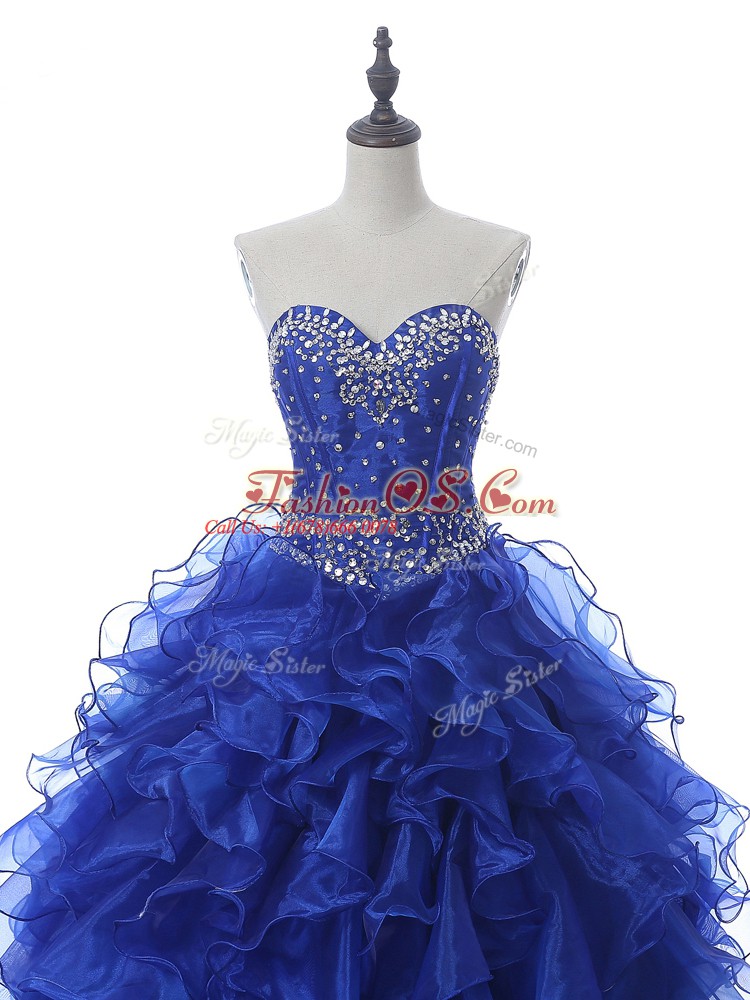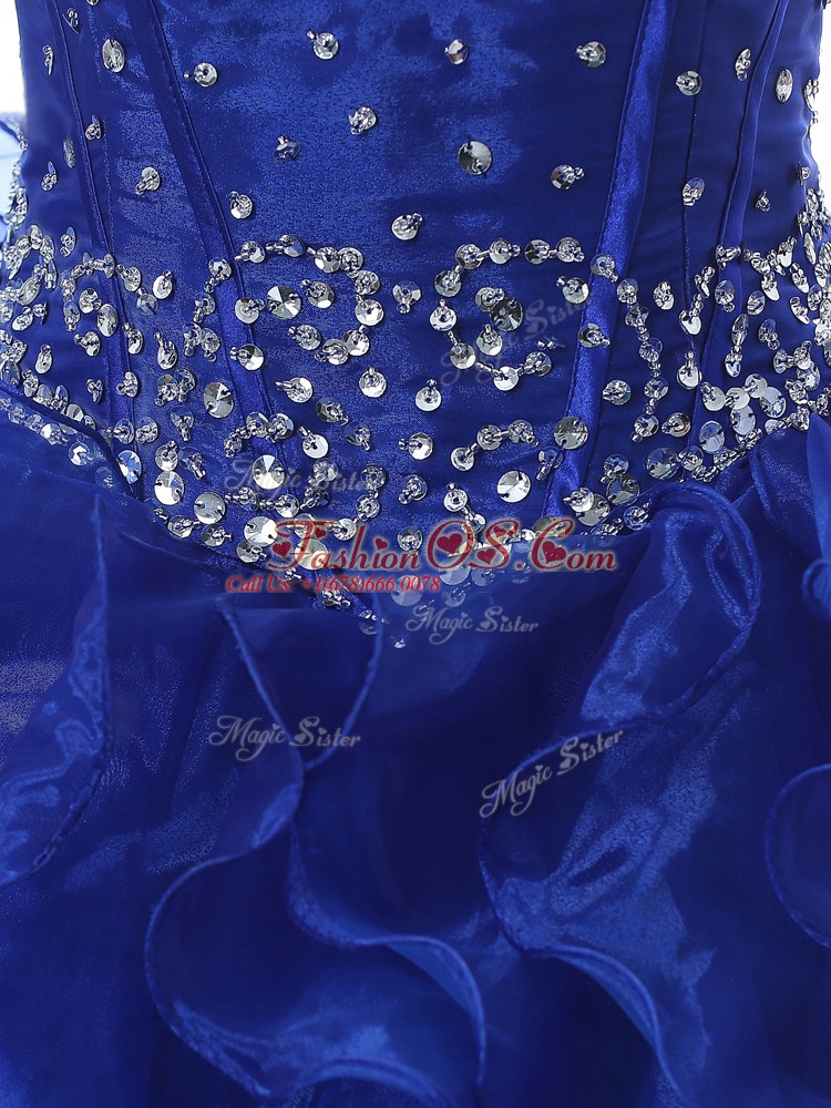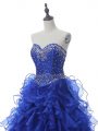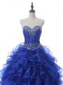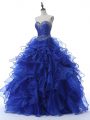 Vintage Sleeveless Floor Length Beading and Ruffles Lace Up Quinceanera Gowns with Royal Blue