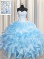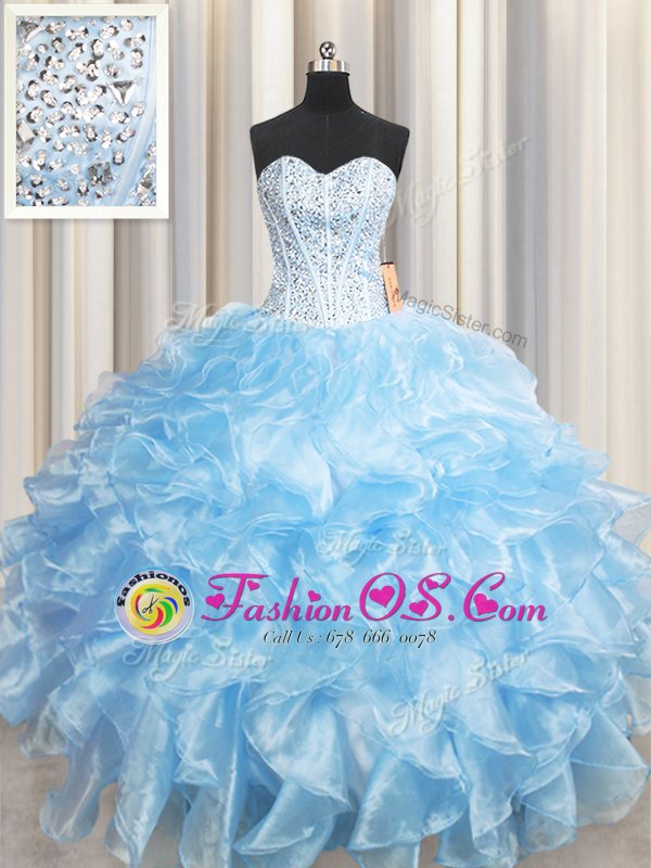Vintage Sleeveless Organza Floor Length Lace Up Vestidos de Quinceanera in Light Blue for with Beading and Ruffles