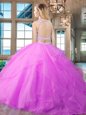 Vintage Sleeveless Organza Floor Length Side Zipper Ball Gown Prom Dress in White for with Beading and Ruffles