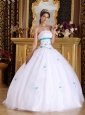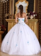Vintage White Sweet 16 Dress Strapless Satin and Tulle Appliques Ball Gown