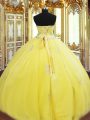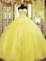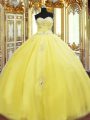 Vintage Yellow Quinceanera Dress Military Ball and Sweet 16 and Quinceanera with Beading and Appliques Sweetheart Sleeveless Lace Up