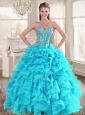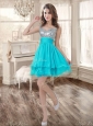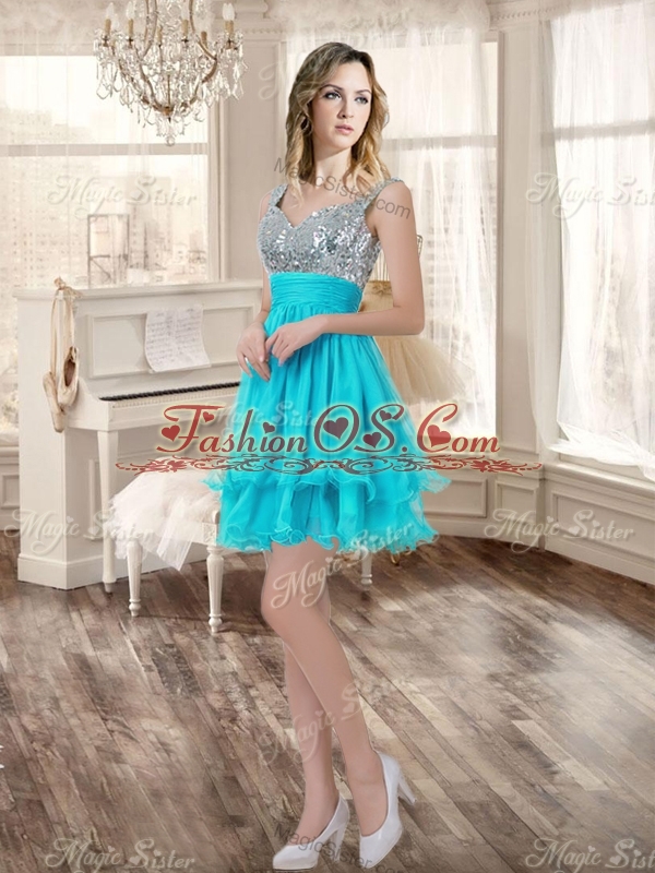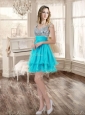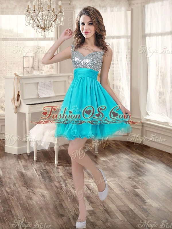 Visible Boning Aqua Blue Quinceanera Dress and Sequined Short  Dama Dresses Beaded and Ruffled Mini Quinceanera Dress