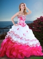 Visible Boning Beaded and Ruffled Quinceanera Gown in Hot Pink and White