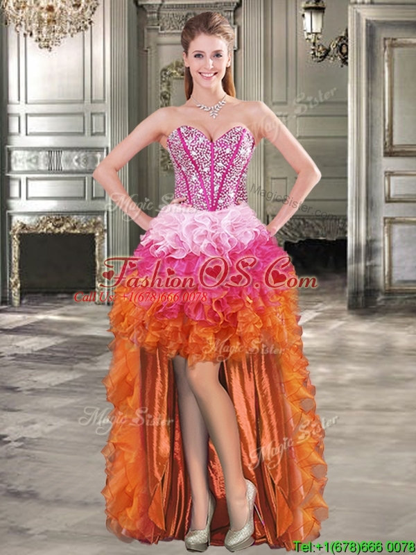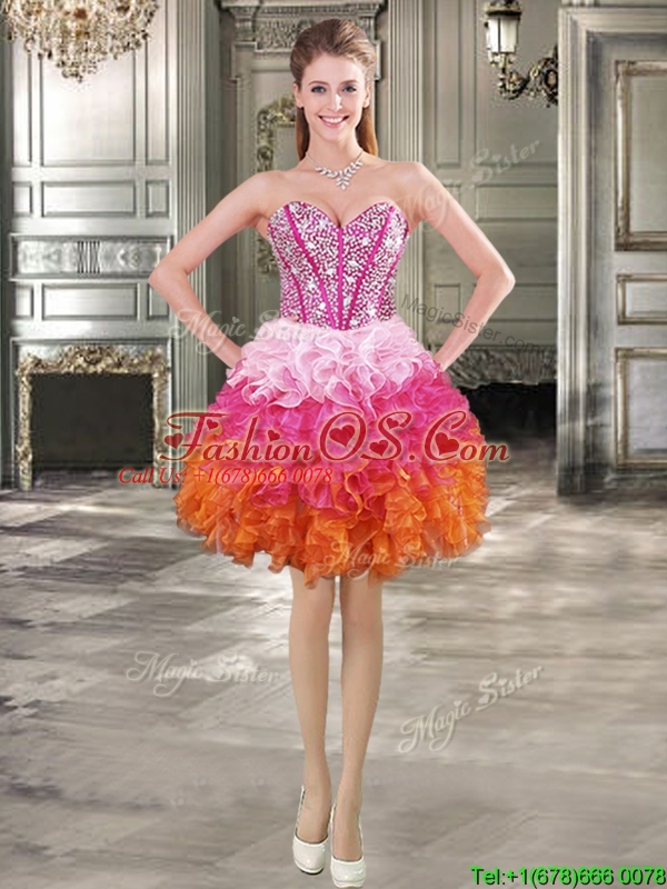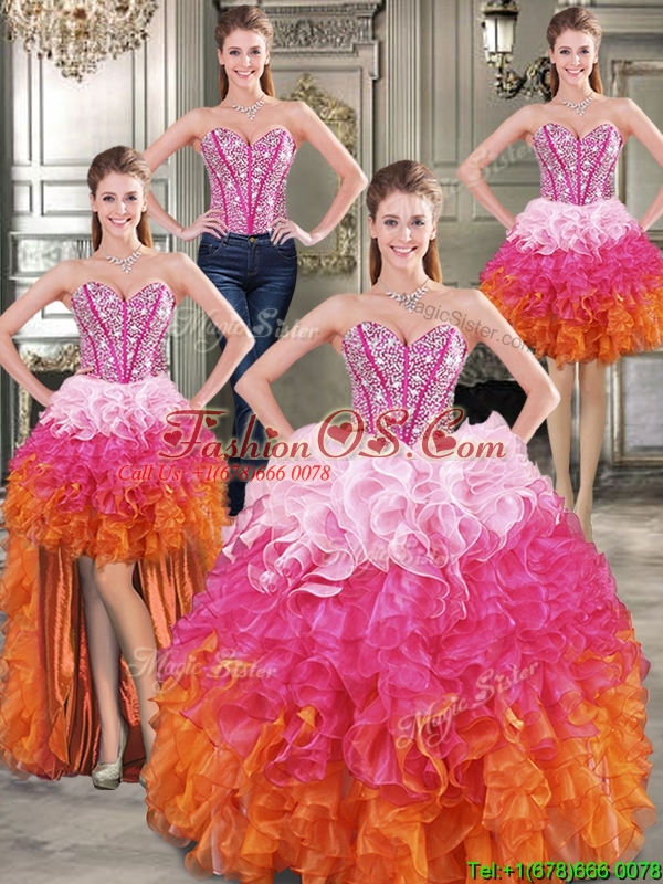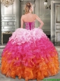 Visible Boning Beaded Bodice and Ruffled Detachable Quinceanera Dresses in Rainbow