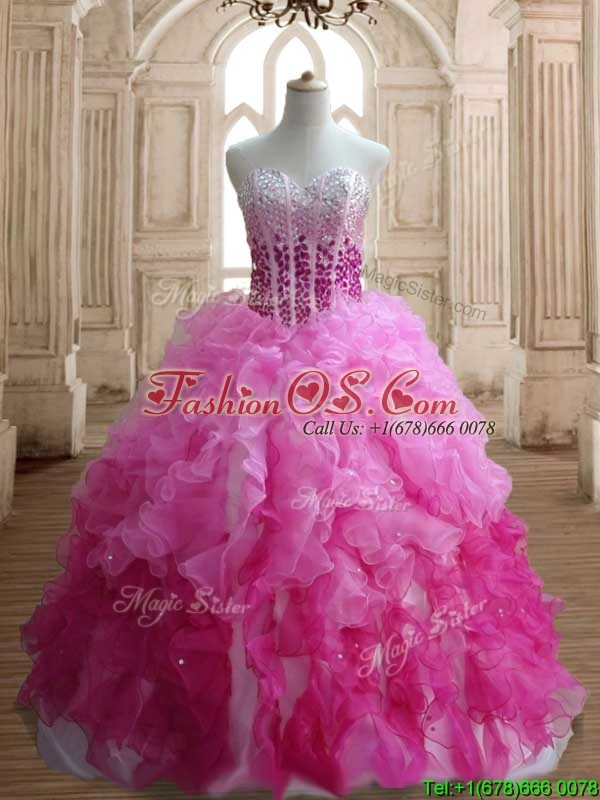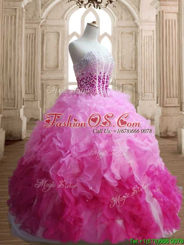 Visible Boning Beaded Bodice and Ruffled Quinceanera Dress in Gradient Color