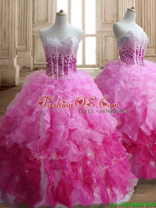Home >  Quinceanera Dresses >  Fast Delivery Quinceanera Dresses > Visible Boning Beaded Bodice and Ruffled Quinceanera Dress in Gradient Color