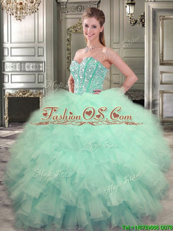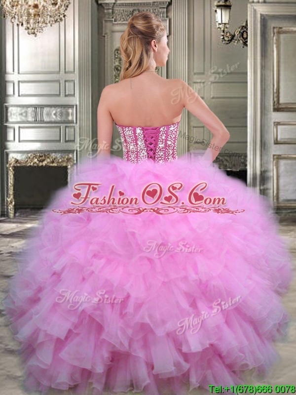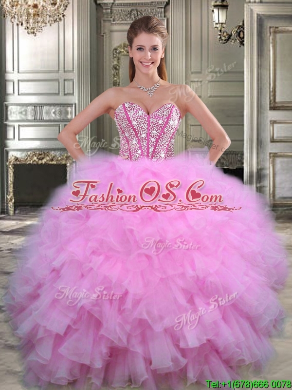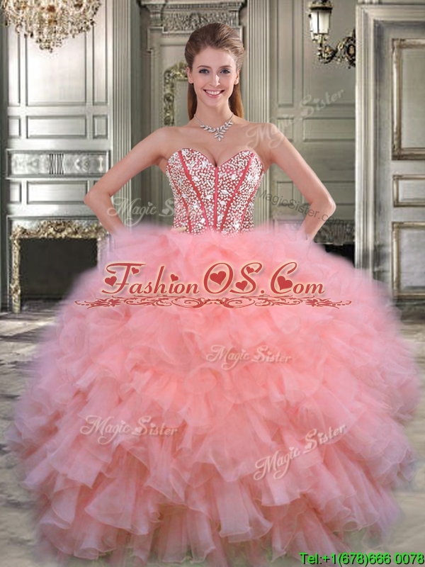 Home >  Quinceanera Dresses >  Chic Quinceanera Dresses > Visible Boning Beaded Bodice and Ruffled Quinceanera Dress in Watermelon Red