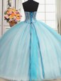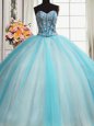 Visible Boning Beaded Bodice Blue And White Lace Up Sweetheart Beading and Ruffled Layers 15th Birthday Dress Tulle Sleeveless