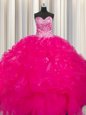 Home >  Quinceanera Dresses >  Discount Quinceanera Dresses > Visible Boning Beaded Bodice Organza Sleeveless Floor Length Quince Ball Gowns and Beading and Ruffles