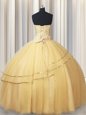 Home >  Quinceanera Dresses >  New Arrival Quinceanera Dresses > Visible Boning Big Puffy Champagne Ball Gowns Beading and Ruching Quinceanera Gown Lace Up Organza Sleeveless Floor Length