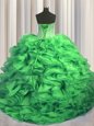 Visible Boning Bling-bling Lace Up Sweetheart Beading and Ruffles Quince Ball Gowns Organza Sleeveless Sweep Train