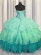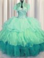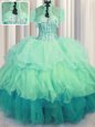 Visible Boning Bling-bling Multi-color Sleeveless Floor Length Beading and Ruffled Layers Lace Up Quince Ball Gowns