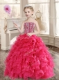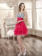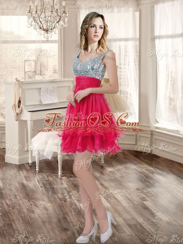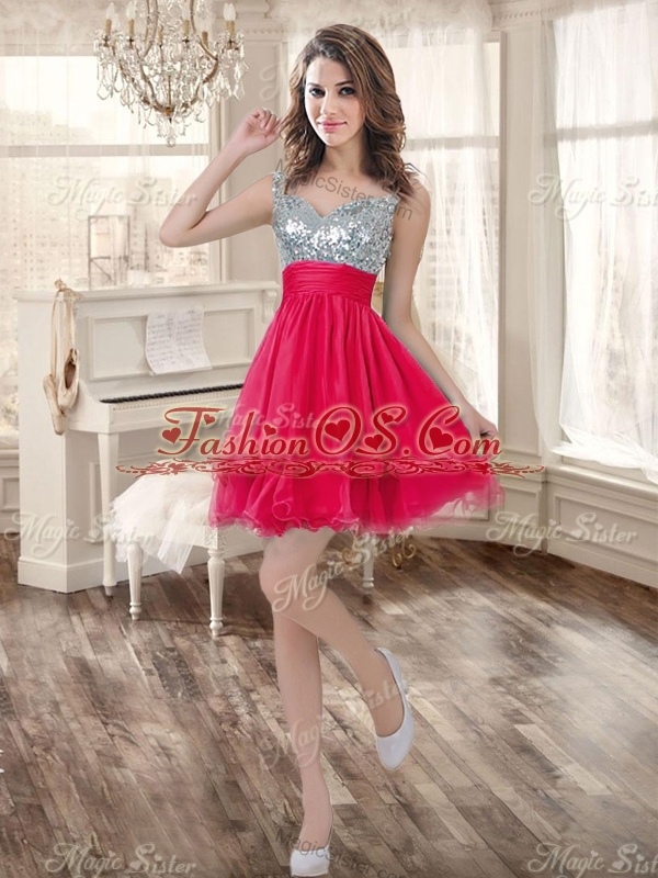 Visible Boning Coral Red Quinceanera Dress and Short Sequined Dama Dresses and Beaded and Ruffled Mini Quinceanera Dress