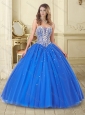 Visible Boning Deep V Neck Beaded Bodice Quinceanera Dress in Blue