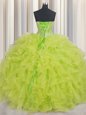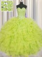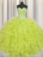 Visible Boning Floor Length Lace Up Quinceanera Dress Yellow Green and In for Military Ball and Sweet 16 and Quinceanera with Beading and Ruffles
