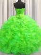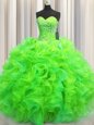 Visible Boning Grey Sweetheart Neckline Beading and Ruffles and Sequins Sweet 16 Dress Sleeveless Lace Up